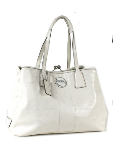 !±8± Coach Signature Leather Patent Framed Carryall Bag 15658 White